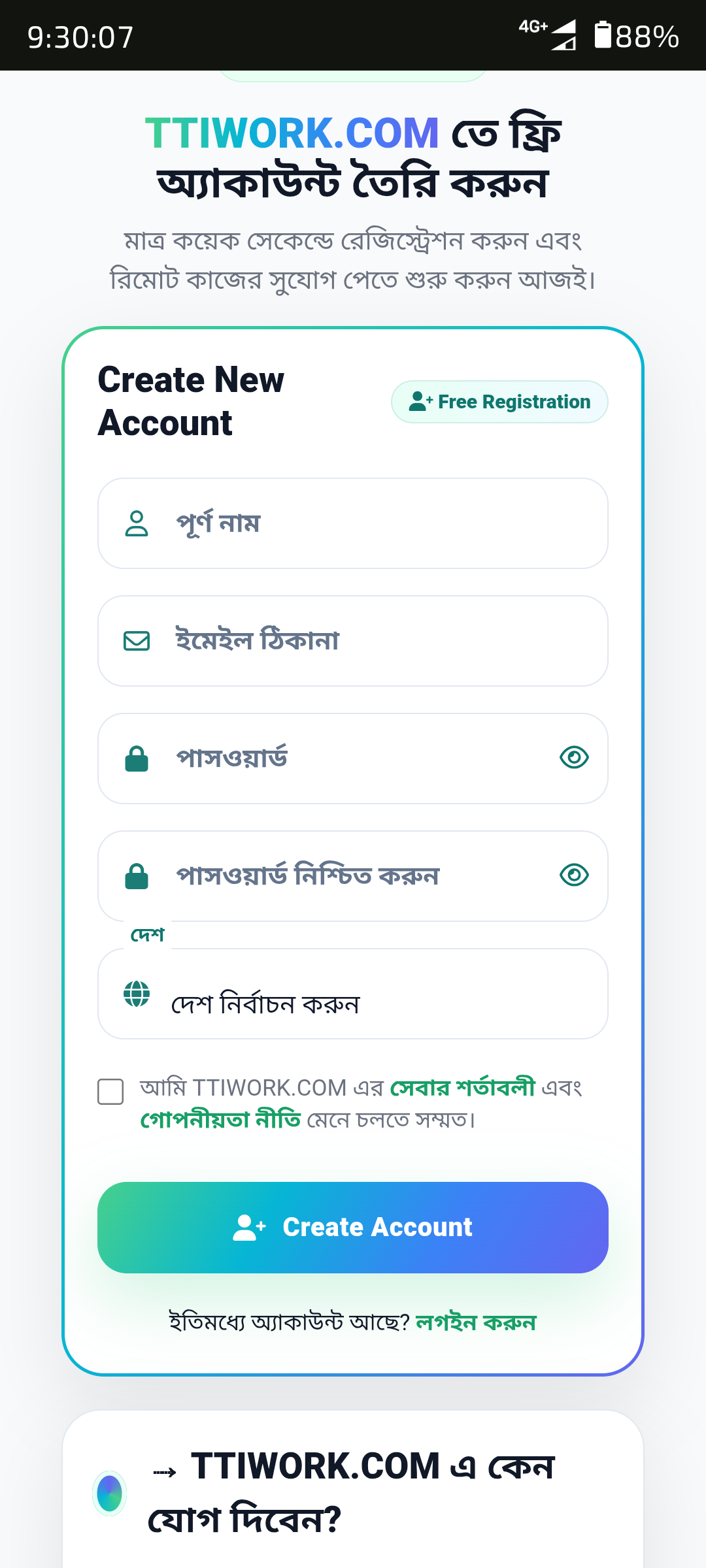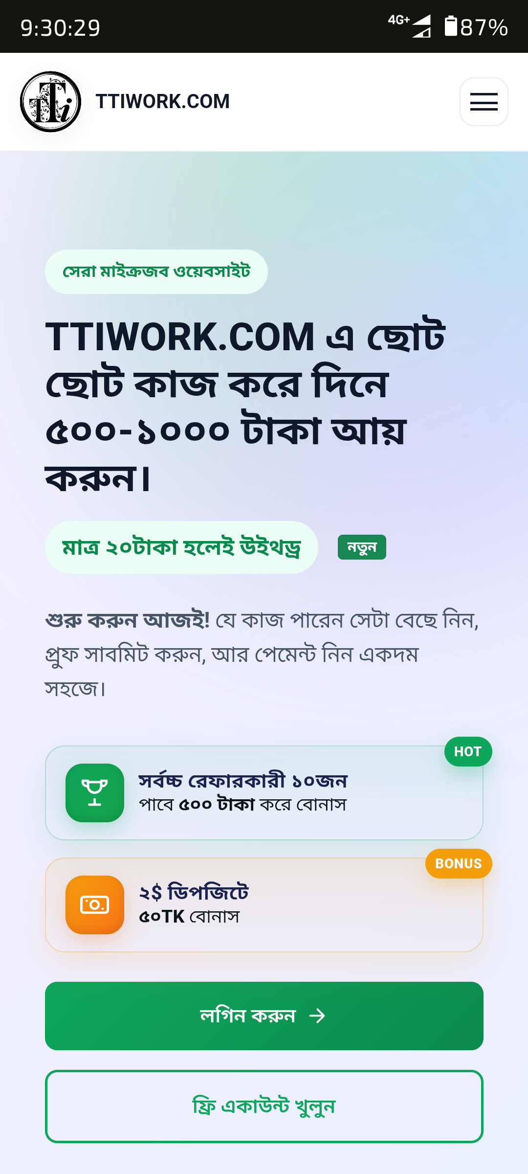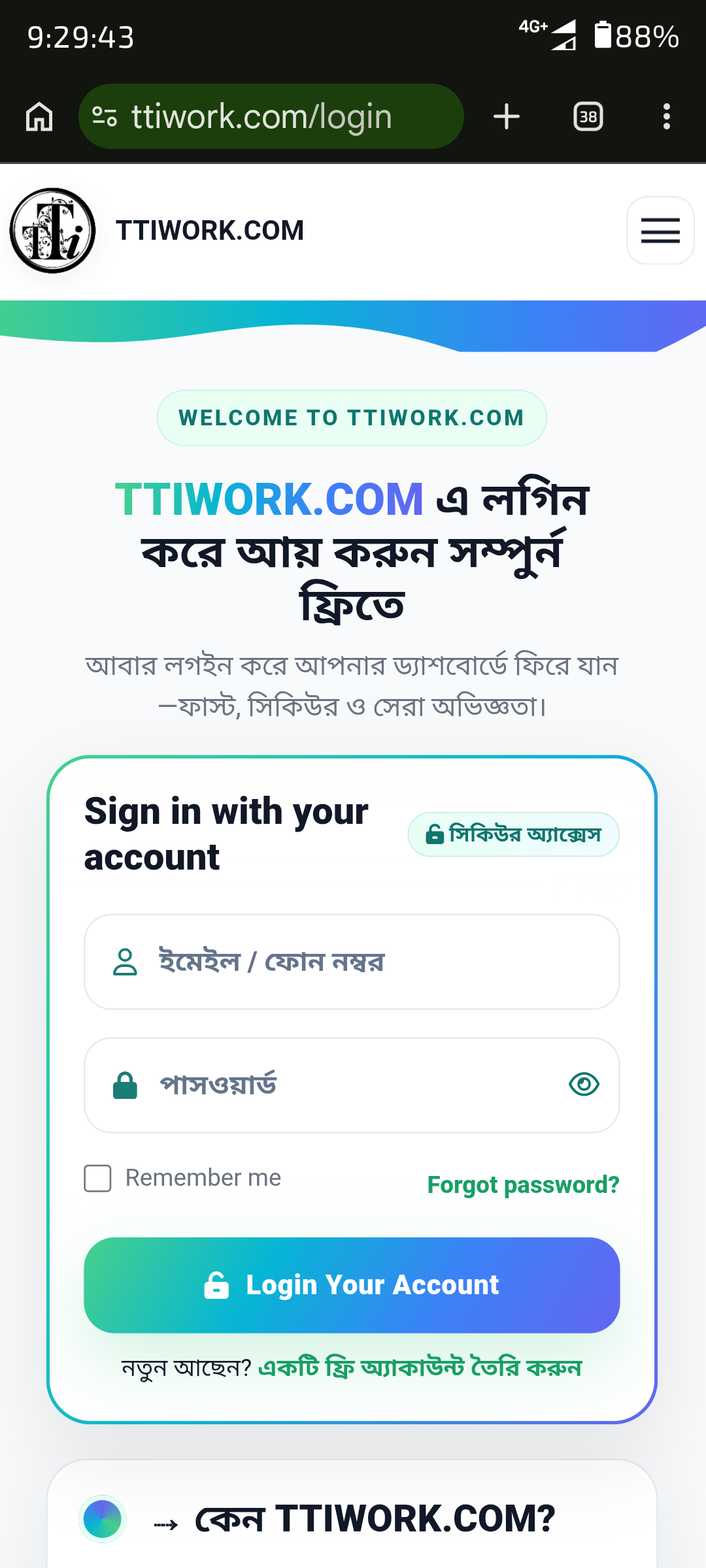 🔥 TTI WORK — বাংলাদেশের সবচেয়ে বিশ্বস্ত ডিজিটাল ফিনান্সিয়াল সার্ভিস প্ল্যাটফর্ম। ২০১৯ সাল থেকে ফ্রিল্যান্সিং জব, অফার ও নিরাপদ লেনদেন। দ্রুত পেমেন্ট, রিয়েল টাইম ক্যাশ ট্রান্সফার এবং ২৪/৭ সাপোর্ট। ফ্রিল্যান্সার ও ছোট ব্যবসায়ীদের জন্য আদর্শ সঙ্গী।